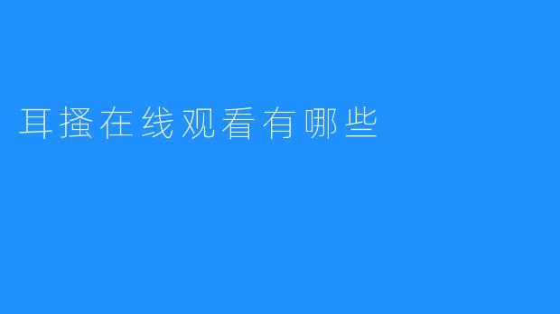 近年来,随着网络的普及和技术的发展,人们越来越习惯在网上观看各种视频内容,包括耳搔视频。那么,在线观看耳搔视频的选择有哪些呢?