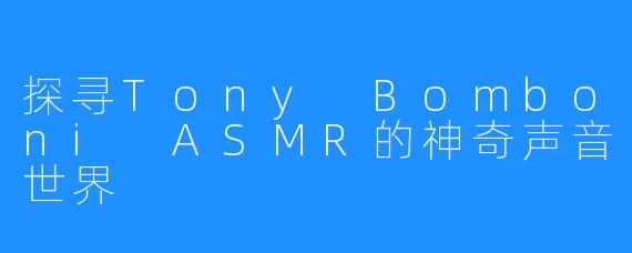 探寻Tony Bomboni ASMR的神奇声音世界的更多相关文章