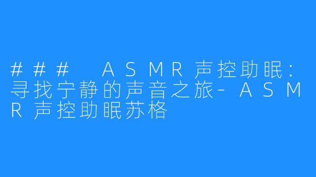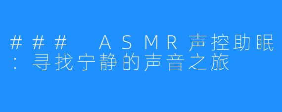 ### ASMR声控助眠:寻找宁静的声音之旅的更多相关文章