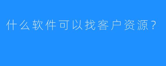有很多软件可以帮助找客户资源,例如CRM软件、商务智能软件等,它们可以帮助企业有效地收集、分析、管理客户信息,从而找准客户资源。