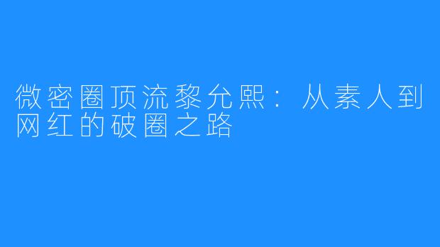 - 微密圈顶流黎允熙:从素人到网红的破圈之路
