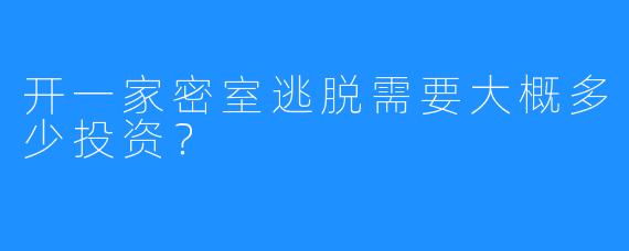 开一家密室逃脱的投资大概在几十万至几百万之间,具体的投资规模也取决于布局、设备等要求。